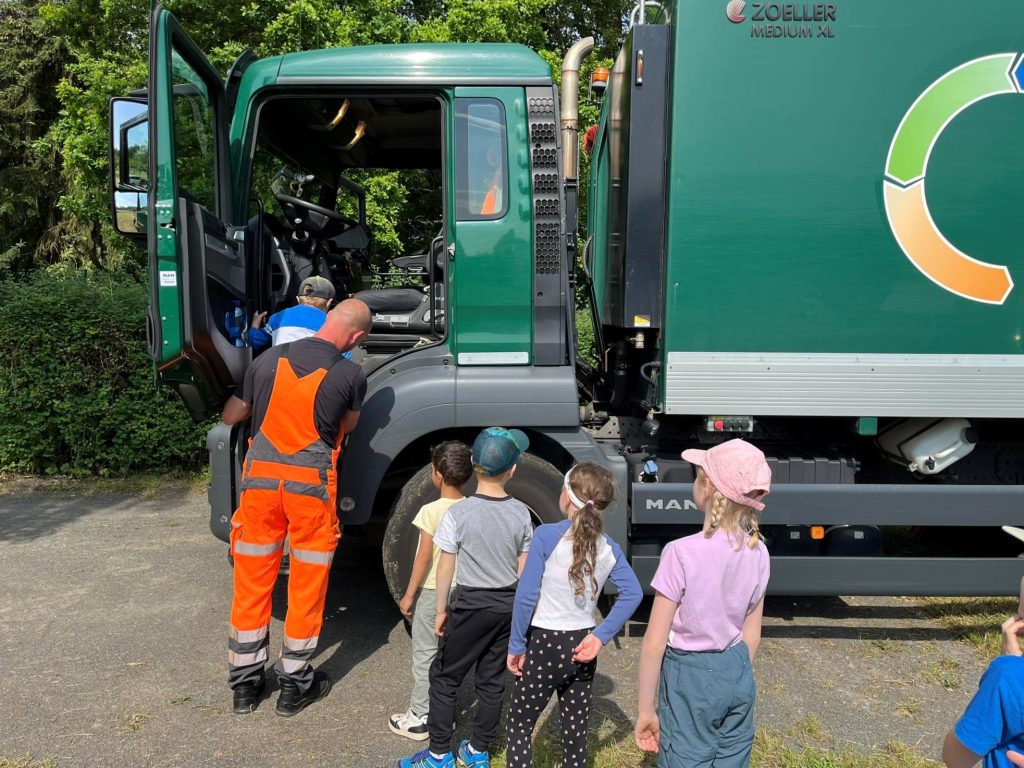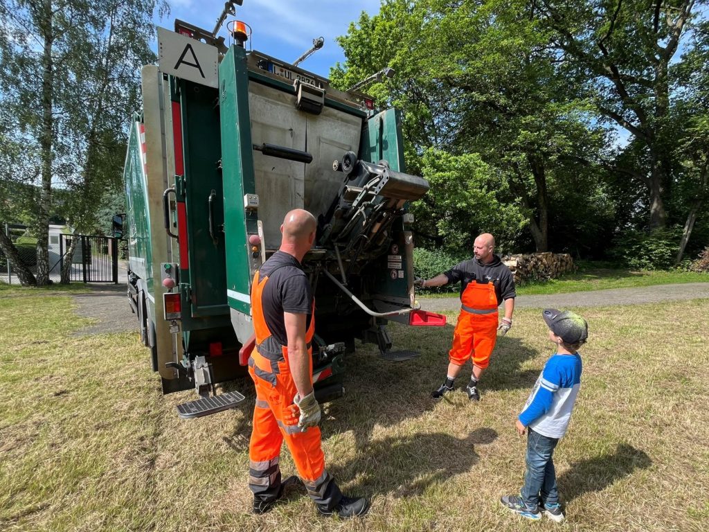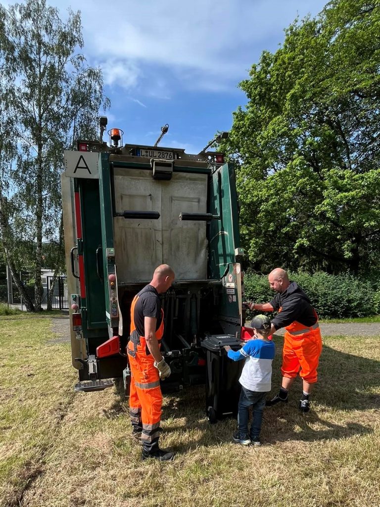 Wir waren am 5.6. wieder mit dabei im Wilhelm-Ostwald-Park in Grimma OT Großbothen, als es für kleine Nachwuchsforscherinnen und Nachfuchsforscher hieß: Experimentieren im Park. Zahlreiche Stationen mit vielen Aktionen boten eine ideale Gelegenheit, physikalischen, chemischen und biologischen Gesetzmäßigkeiten spielerisch auf den Grund zu gehen. Vorschulkinder und Grundschulklassen hatten an unserem Stand „Abfall ist Wertstoff“ die Möglichkeit fleißig Abfälle zu sortieren, die Abbau- und Verrottungszeiten verschiedener Abfälle in der Natur zu schätzen und waren erstaunt, wie viele verschiedene Rohstoffe in Mobiltelefonen stecken und verstanden, warum diese auf keinen Fall in der Mülltonne landen sollten. Das große Highlight fand im unteren Parkgelände statt: Die Kinder kamen mit unseren Müllwerkern an ihrem Abfallsammelfahrzeug ins Gespräch und konnten das Fahrzeug aus nächster Nähe beobachten.