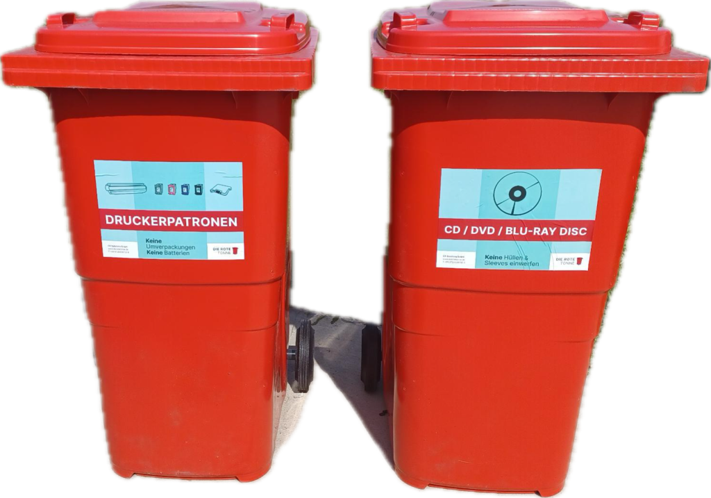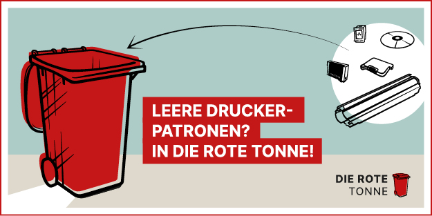 Aus einer Roten Tonne können im Schnitt ca. 48 Druckerpatronen der Vorbereitung zur Wiederverwendung zugeführt werden. Jedes Jahr werden ca. 2.000.000 Tintenpatronen und Tonerkartuschen für die Wiederverwendung zurückgewonnen (ca. 55%).