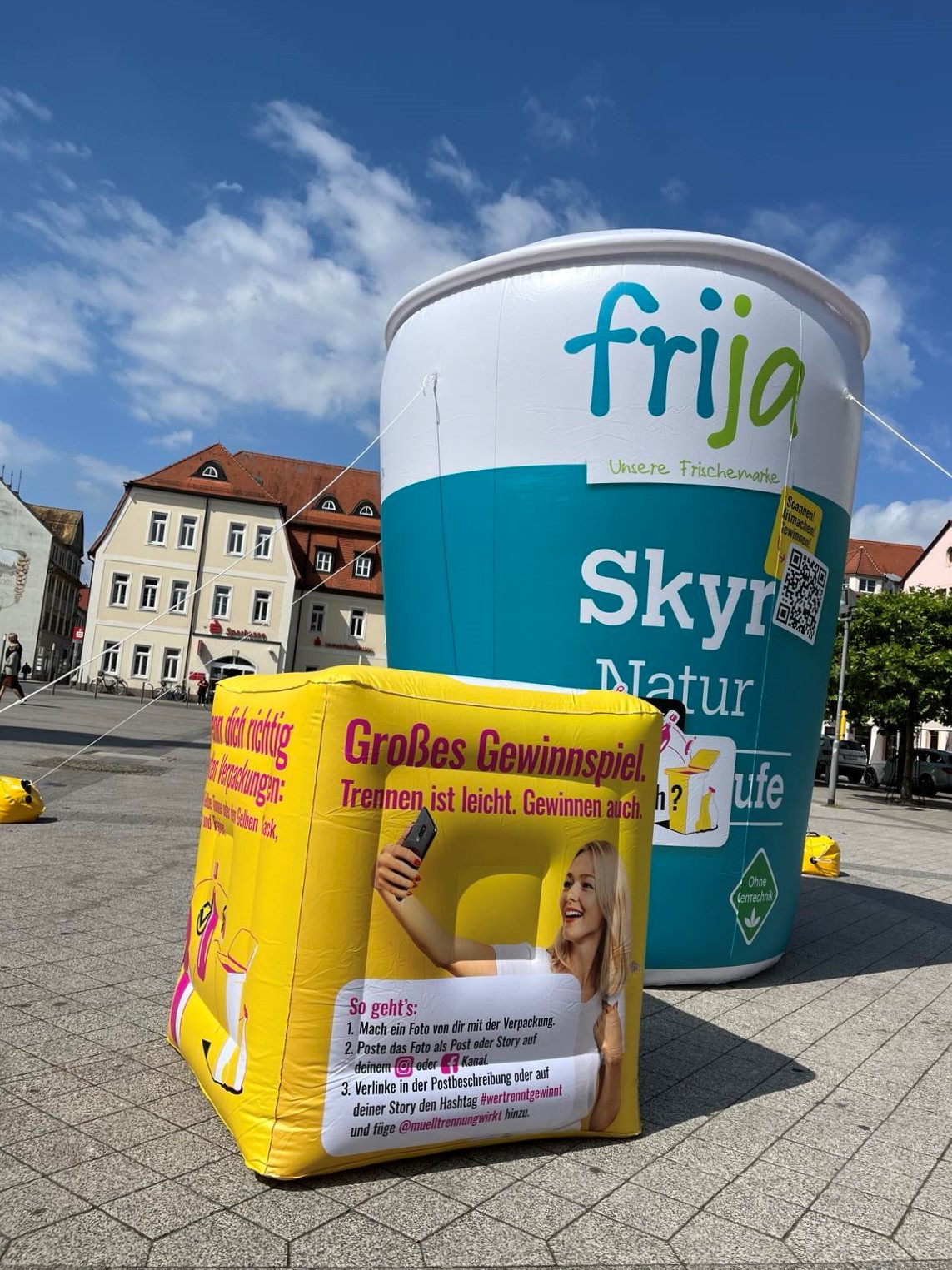 Eine riesige Verpackung auf dem Marktplatz? Was sollte das denn? Vom 12. bis 14. Juni 2024 haben die auffälligen XXL-Verpackungen in Borna, Grimma und Markranstädt auf ein wichtiges Thema aufmerksam gemacht: richtige Mülltrennung.